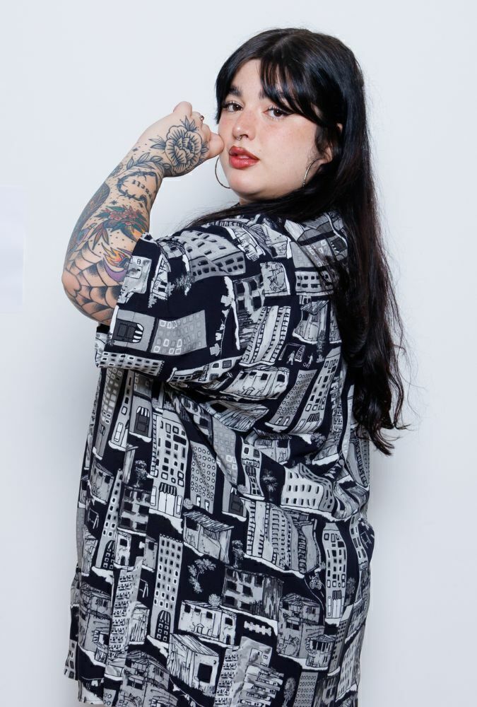 Esta estampa é um retrato fiel das metrópoles, onde o luxo dos altos prédios convive lado a lado com a força da periferia. O contraste entre os arranha-céus e as favelas é um reflexo da dualidade da cidade: um lugar de imensos desafios e também de oportunidades grandiosas. As linhas e formas dessa estampa capturam a essência de uma metrópole pulsante, onde cada canto, cada rua, cada estrutura, conta uma história única de resistência, superação e, acima de tudo, a realidade crua da cidade que nunca para.